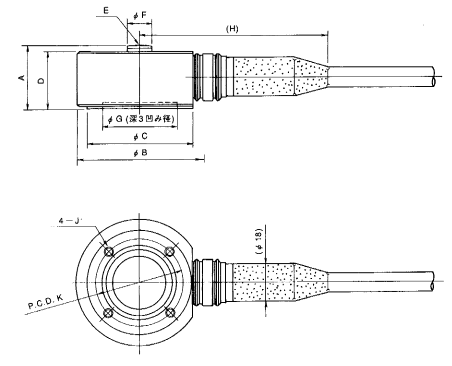 | 型式名 | 定格容量 | A | B | C | D | E | F | G | H | J | K | 固有振動数 | 質 量 |