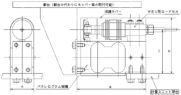 - 計量機構には高精度パラレログラムの製作により大形載台を取り付け可能