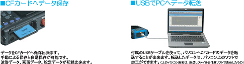 | 外部記憶 | 設定条件,測定データ(テキストとバイナリ),画面データ |