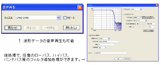 | その他 | フィルタ(FIR、バタワース)、音声再生機能 |