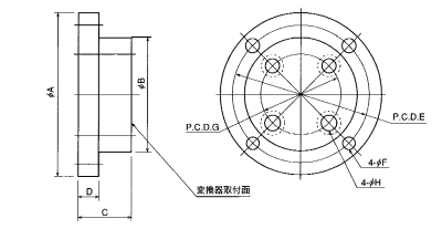 | 型式名 | ΦA | ΦB | C | D | E | F | G | H | 取付ボルト(付属品) |