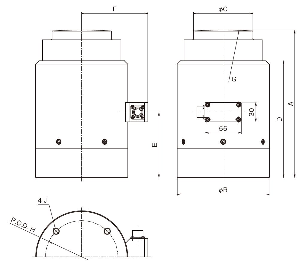| *RCK-500KN | 500 kN | 140 | 85 | 44 | 130 | 70 | 71 | SR300 | 65 | M8 深10 | 33 kHz | 5.2 kg |