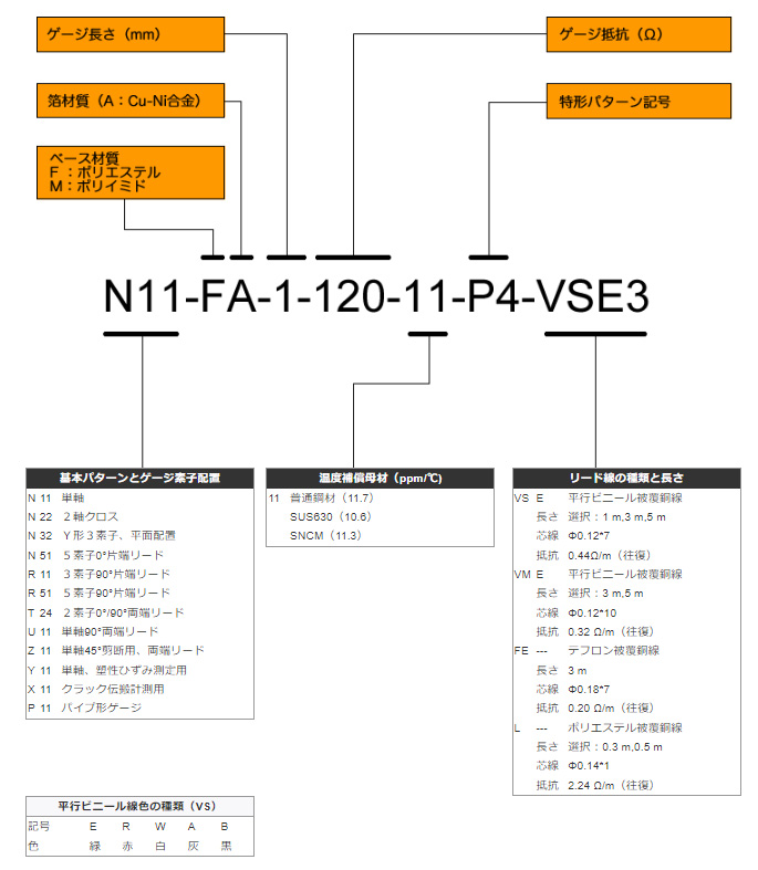 - 2軸及び3軸ゲージでは色記号が付きません。(例:VS1,VS3…)