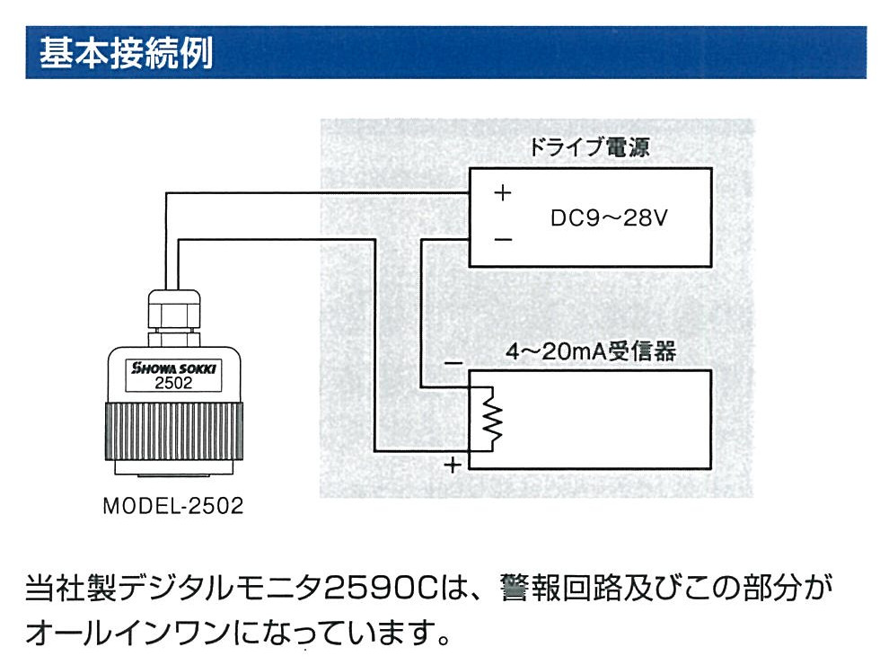 | 2 | デジタルモニタ(4-20mA出力付) | MODEL-2590C-A11 | 1台 | 2502シリーズの全てに 適合します |
