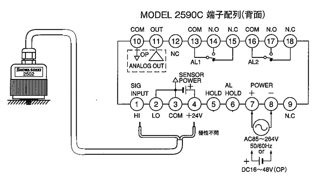 - 専用モニタやメータリレーなどに接続することにより、振動計または振視計として使用できます。